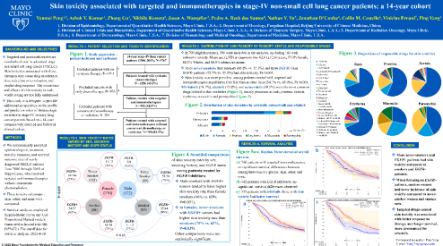 将国际合作研究成果发表在皮肤领域最权威的期刊Journal of the American Academy of Dermatology上,多项成果入选国际学术会议交流。2023世界肺癌大会(2023/9新加坡),彭艳梅主持的关于抗肿瘤药物的皮肤毒性和心脏毒性的研究受邀在会上进行壁报交流;2024美国临床肿瘤学会年会(2024/6美国 芝加哥)肺癌患者生活质量的研究受邀在会上进行壁报交流。