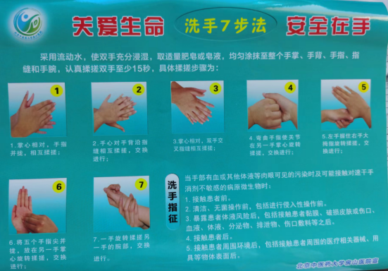 院感办工作人员向医务人员及患者、家属和保洁、保安等三方人员发放洗手宣传图。利用LED屏滚动播出手卫生宣传标语。