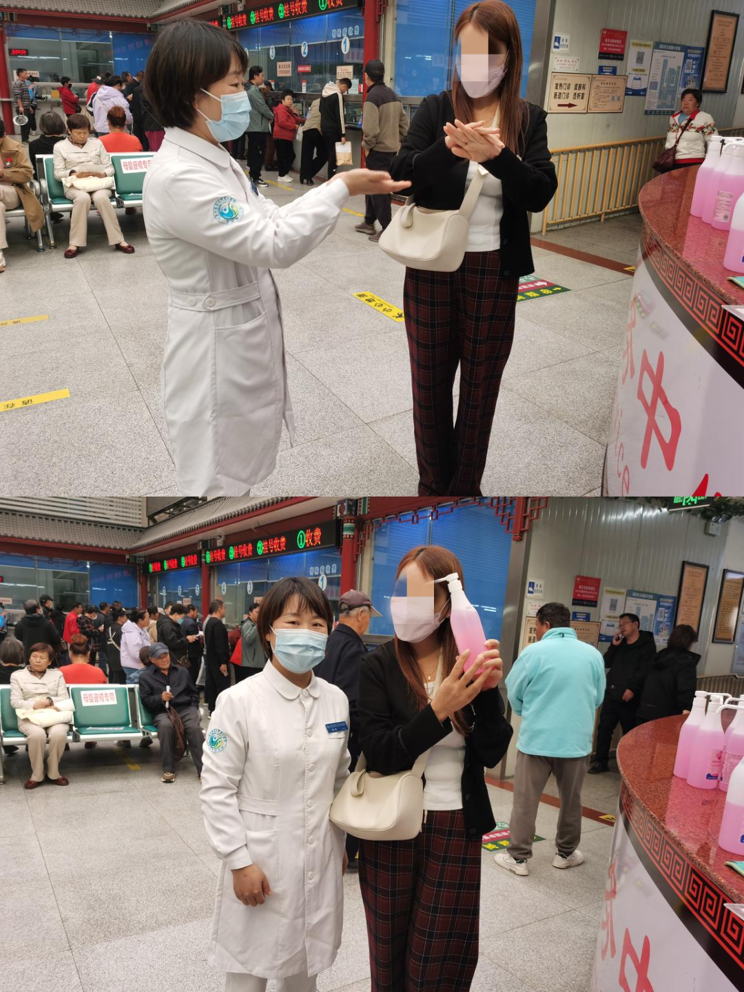 院感办工作人员对现场参与活动的人们进行手卫生知识培训,包括手卫生设施、洗手指征及正确洗手方法等,加深了人们对手卫生的理解。对积极参与活动者现场赠送手消液一瓶。