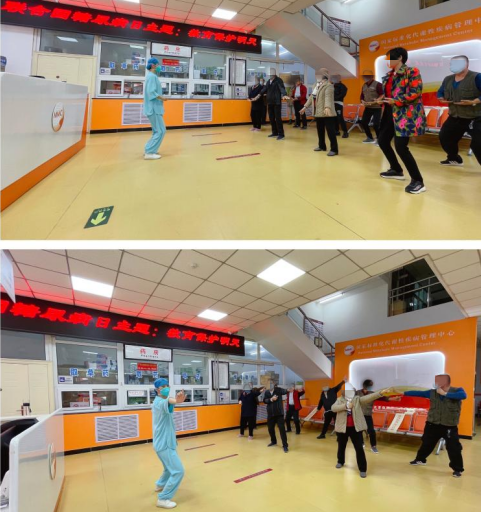 结合健康大讲堂、义诊等日常工作,我们积极将八段锦推广到社区、养老院里,带领群众、养老照护人员练习八段锦。