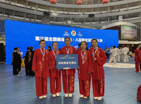 2020年底举办的第三届全国健身气功·八段锦交流比赛大会上,我院5名队员组成“杏林飘香”代表队获得三等奖,极大地提高了职工习练八段锦的积极性。
