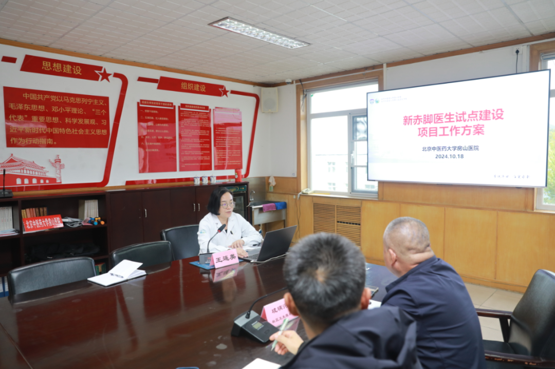 为持续强化基层社区中医药服务能力,提升优质中医药资源的可及性,根据北京市中医药管理局、房山区卫生健康委有关通知要求,房山区启动了新赤脚医生试点建设项目,项目启动会于2024年10月18日下午在北京中医药大学房山医院召开,房山区卫生健康委医政科、北京中医药大学医院管理处、相关社区卫生服务中心、北京中医药大学房山医院、专家团队医师参会,由北京中医药大学房山医院副院长傅春江主持会议。