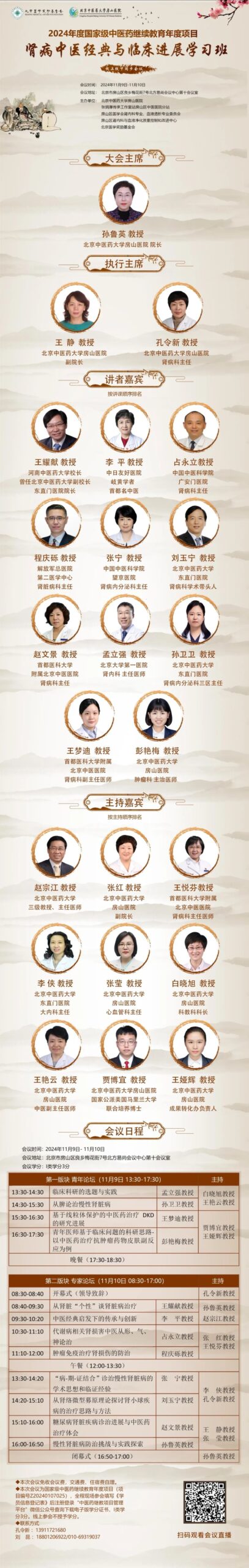 为推动中医经典理论与临床实践结合,拓展中医药学术空间和肾病专业前沿知识,促进中医经典传承,由北京中医药大学房山医院主办的“肾病中医经典与临床进展学习班”将于2024年11月9日-11月10日在北京市房山区北方易尚会议中心举办。学习班邀请全国中西医知名肾病专家分享临床诊治经验,加强中西医肾病专家交流,提高中医临床思维,促进中医经典应用,解决临床实际问题,提高肾病医师对中医经典的理解及中医经典治疗肾病的临床技能。欢迎广大医学同仁参会!