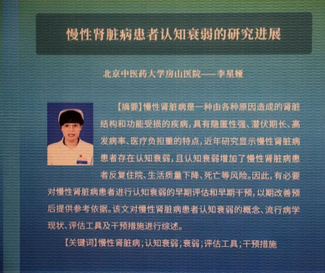 慢性肾脏病患者认知衰弱这一重要领域,慢性肾脏病患者的护理一直是医疗领域的关键课题,认知衰弱更是对患者的生活质量和康复进程有着深远影响。李星娅通过严谨的调研与深入分析,为更好地护理这一特殊群体提供了极具价值的参考,为临床护理工作开拓了新的视野,也为护理临床技术创新注入了新的活力。