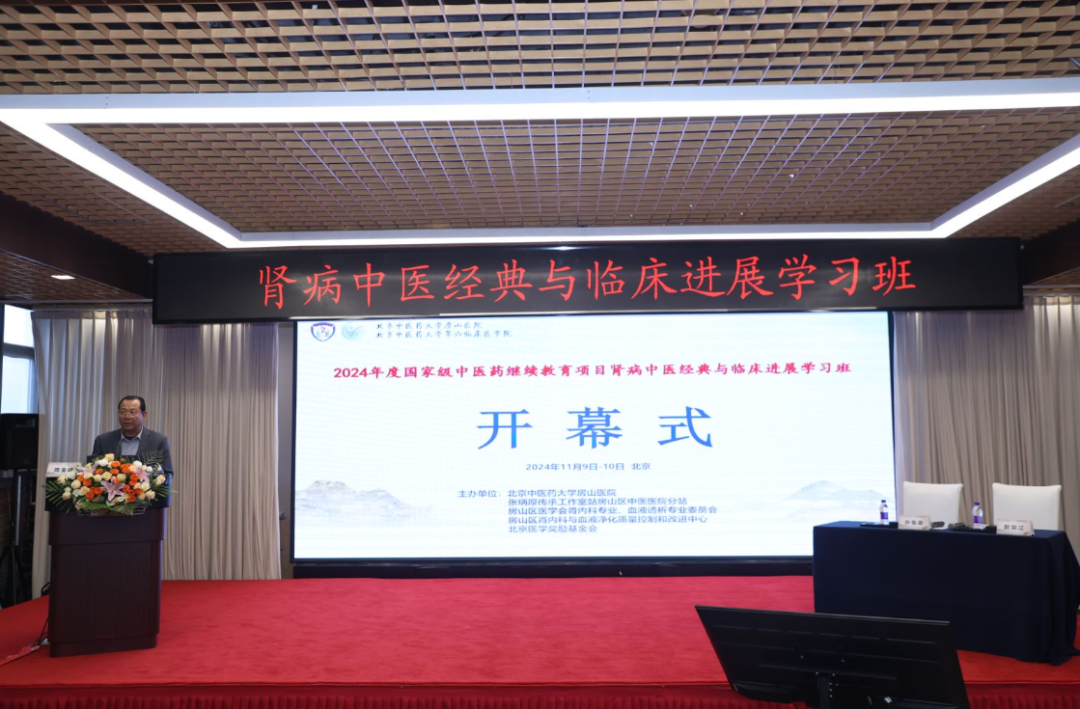 本次学习班设有专家论坛、青年论坛两部分,主旨为肾病中医经典紧跟临床进展,中西医结合,推广中西医诊治肾病经验,北京中医药大学房山医院院长孙鲁英致开幕词,房山区医学会会长周玉峰发表讲话并预祝学习班圆满成功,北京中医药大学房山医院肾病科主任孔令新任主持。