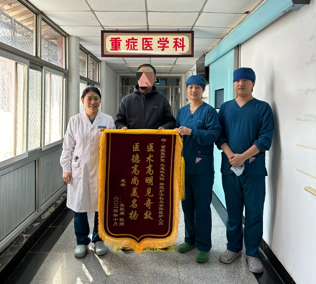 近日,北京中医药大学房山医院重症医学科收治一位肺胀需要血滤治疗的患者,病情非常危急。转入重症医学科后,医护团队迅速行动,医生们凭借精湛的医术和丰富经验准确判断病情,制定科学治疗方案,一方面采用现代医学血滤、抗感染、解痉平喘等治疗手段,另一方面运用中医针灸,穴位贴敷,中草药等调理患者身体机能。护士们24小时悉心守护,精心护理,时刻关注患者细微变化。经过不懈努力,患者病情逐渐好转,最终康复出院,家属特地送锦旗表达感谢。