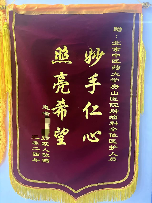 在医者的世界里,一面锦旗,不仅是荣誉的象征,更是生命重生的见证。近日,北京中医药大学房山医院肿瘤科迎来了一份沉甸甸的礼物——一面印有“妙手仁心 照亮希望”的锦旗,这是对该科室医护人员无私奉献和精湛医术的最高褒奖。