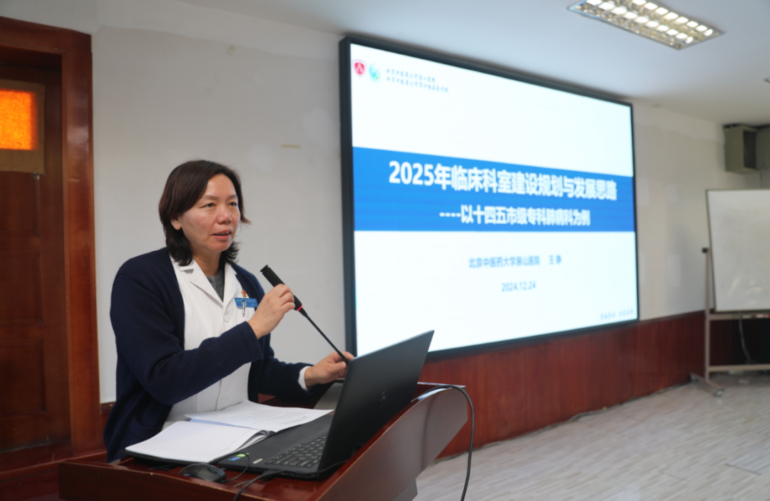 王静副院长以临床科室建设规划与发展思路为主题,结合个人重点专科学术带头人管理经验,从专科架构优化、人才梯队建设、专科发展方向等方面进行多方位、深层次的交流分享,突出强调了专科主攻方向确立、优势亚专科建设、上下联动协同合作等举措的重要性;同时强调职能科室与临床科室建立双向沟通机制,携手共进,形成合力,为2025年各临床科室高质量发展再谱新篇。