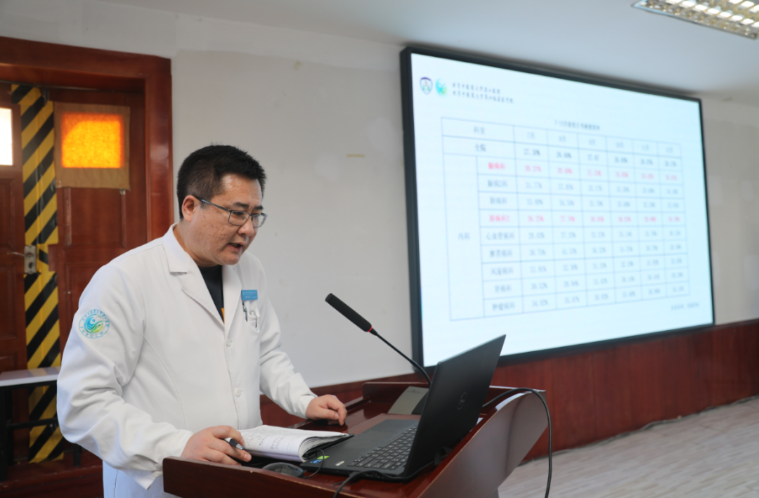 门诊办、病案质控科、投诉中心、医保办、疾控科等职能科室相继发言,分别通报今年以来业务发展概况、接诉即办、电子病历应用、医保工伤检查等归口相关指标问题、政策导向,并提出相应的解决措施、整改方案。