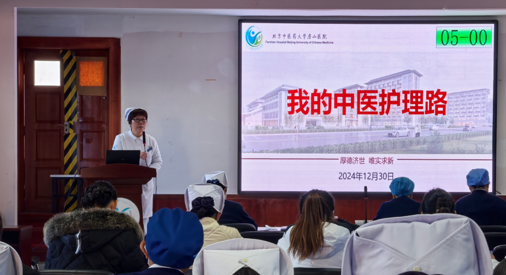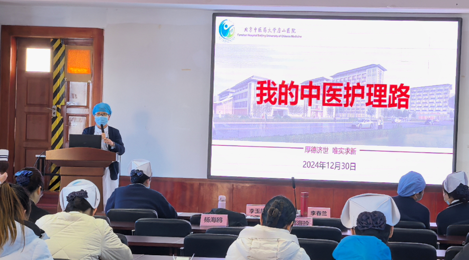 为深入贯彻《“十四五”中医药发展规划》,全面展示新时代中医护理工作者敬业奉献的精神风貌,北京中医药大学房山医院护理部于2024年12月30日在医院西二楼举办以“弘扬精诚德业,讲好中医护理故事”为主题的“我的中医护理路”分享展演活动。活动由护理部李玉凤老师主持,临床科室护士长、护士近70人参加活动。
