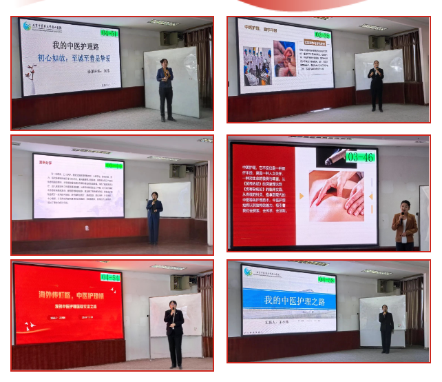 随后来自临床一线的19名护理人员分别聚焦求学之路,临床之路,创新之路、科研之路、国际交流之路等,以PPT汇报形式清晰呈现个人在中医护理领域的经历、感悟、成长。他们用独特的视角和细腻的情感讲述自身的经历和故事,生动地诠释了中医护理工作者的高尚品德和职业精神,展示了中医护理领域的独特魅力与价值。