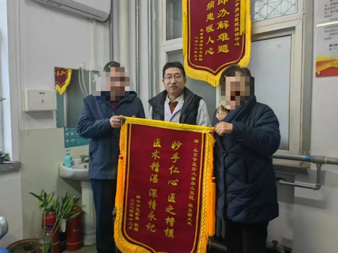 在医院的每一个角落,每天都在上演着关于生命与健康的感人故事。在这寒冬之日,北京中医药大学房山医院透析室梁卫国医生收到了患者韩先生及家人送来的锦旗。韩先生是梁医生的门诊患者,约五年前经人介绍来找梁医生看病,经梁医生治疗后疗效非常好,患者痊愈后又陆续介绍自己的家人和亲戚过来看诊,经过梁医生的中医中药治疗,韩先生和家人都非常满意。不仅身体比以前健康了,更是了解了许多的疾病知识,提升了自我保健的意识和能力。心中充满感激之情,因此特意送来锦旗向梁卫国医生表示感谢。