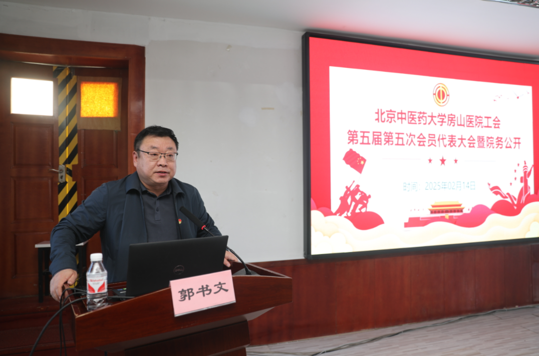 2025年2月14日,北京中医药大学房山医院第五届第五次会员代表大会在医院西二楼会议室圆满召开。医院领导班子、中层干部、职工代表近百人参加会议,会议由工会主席杨景柳主持,大会在雄壮的国歌声中开幕。