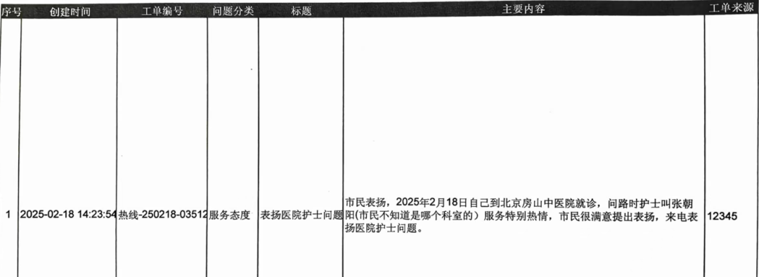 近期,我院收到12345患者家属的表扬,表扬张朝阳护士服务热情。患者家属说自己带着病人来就诊,穿梭在各个科室之间,自己年纪也大,还要照顾病人有些吃力,正在发愁之际,一位护士来帮忙,从工牌看到了名字,她耐心引导,带领患者去诊室,快速的解决了问题,感受到了温暖,深刻体会到了医院的人文精神。