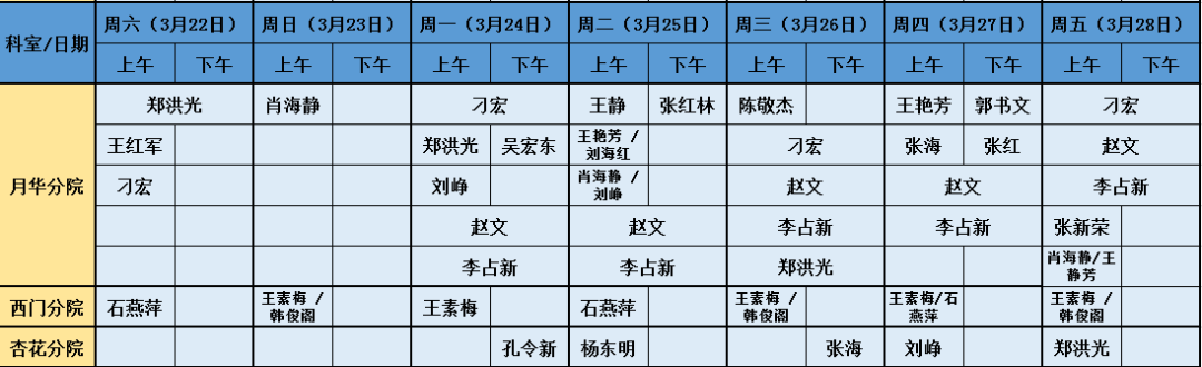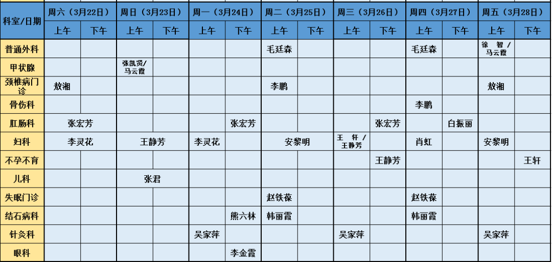 温馨提示:如有出诊信息变动,请以实际坐诊医师为准,敬请见谅!