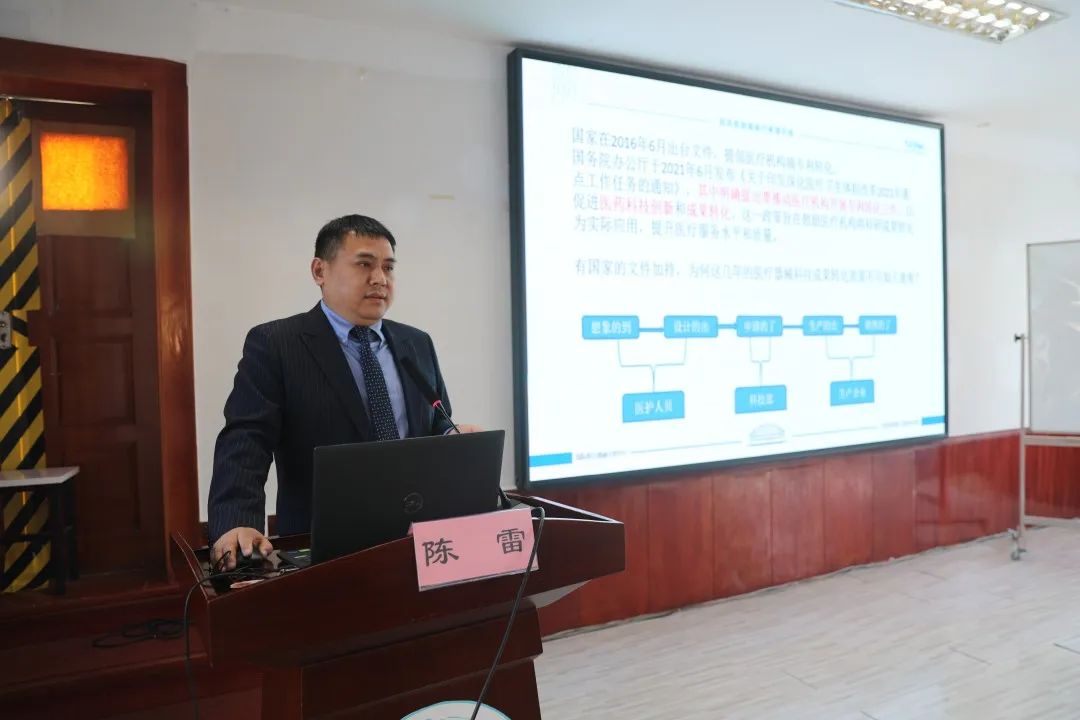在专题分享环节,驼人集团项目经理张建超以《创新联合体助力高价值成果转化》为题,结合多个实际案例,系统解析了从专利布局到市场化落地的全链条路径。项目经理王旭聚焦《临床高价值专利的申请与设计》,详细讲解了专利撰写的核心要点、审查标准、申请途径等内容,为医护人员提供了切实可行的申报策略。