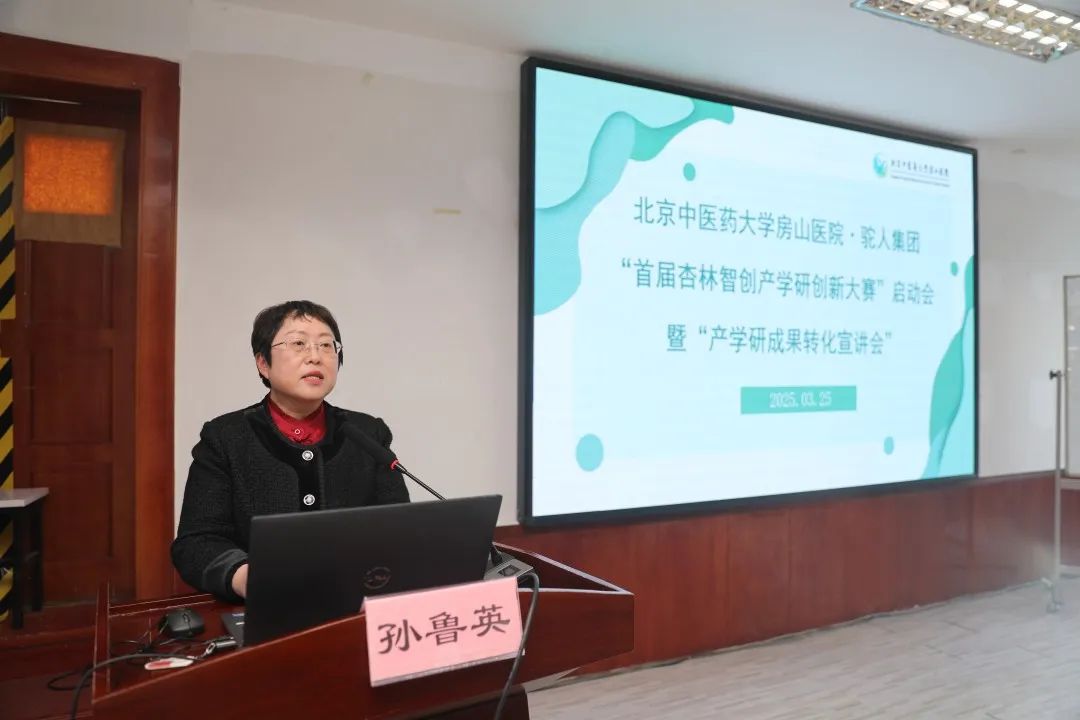 为深化产学研协同创新,推动中医药科技成果转化,北京中医药大学房山医院于3月25日下午在西二楼会议室隆重召开“首届杏林智创产学研创新大赛”启动会暨“产学研成果转化宣讲会”。北京中医药大学房山医院院长孙鲁英、副院长张新荣、党委委员李鹏、各科室科研骨干及驼人集团北京销售总监陈雷、北京行销副总监邢文治、北京渠道副总监苏震等企业代表齐聚一堂,共话中医药创新转化新未来。
