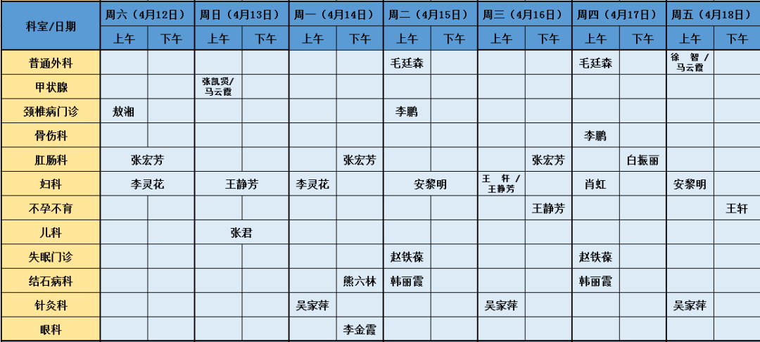 温馨提示:如有出诊信息变动,请以实际坐诊医师为准,敬请见谅!