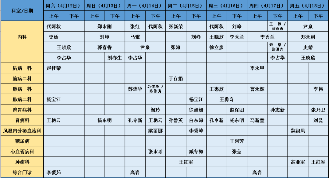 周二、四、六上午良乡分院内科