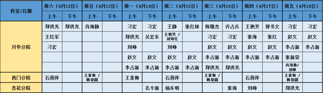周一上午,周三、六全天月华分院