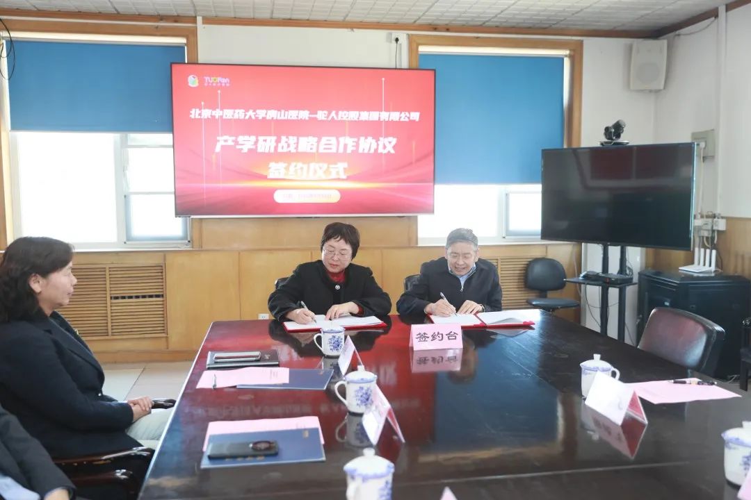 2025年4月14日上午,北京中医药大学房山医院与驼人控股集团有限公司在医院办公楼三楼会议室举行产学研战略合作签约仪式及交流座谈会。驼人控股集团总裁王国胜携北京团队核心成员出席会议,我院孙鲁英院长率医院领导班子及职能部门负责人参会。双方围绕科技创新、成果转化、服务提升等展开深入交流,并正式签署战略合作协议,开启“产研学协同”的新篇章。