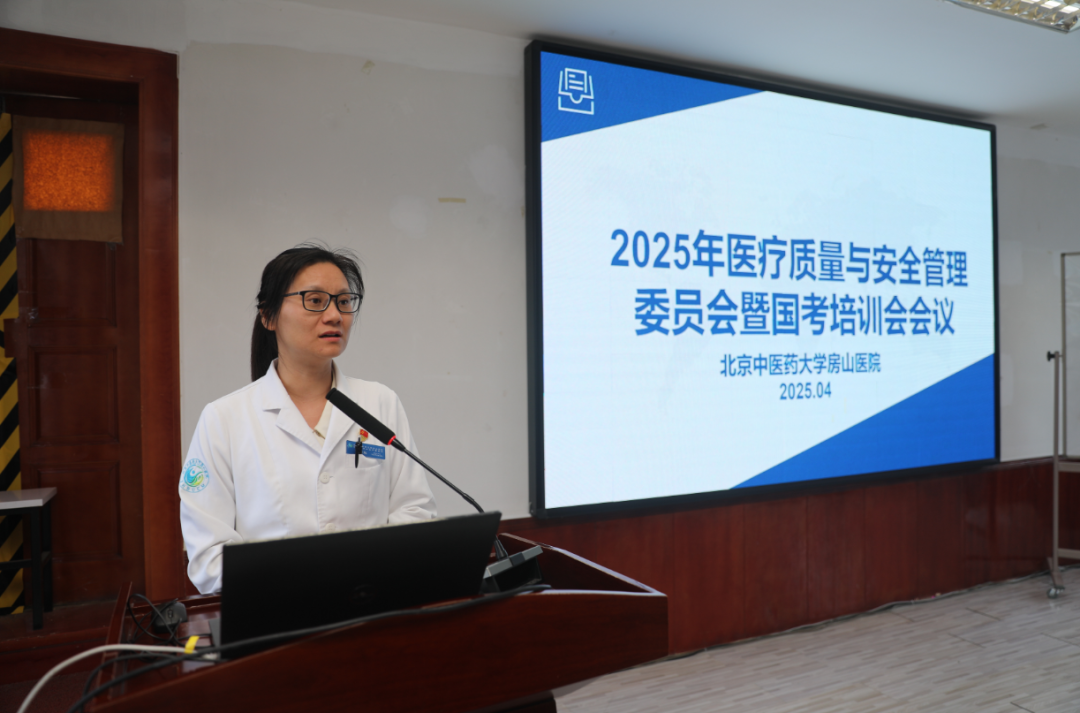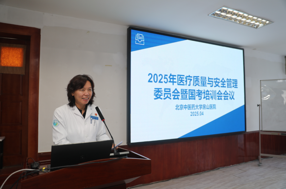 2025年4月15日,北京中医药大学房山医院召开月度质控会及国考培训会。院领导班子、临床科室主任、质控员、护士长、医技科室及相关职能科室负责人在西二楼会议室参会。会议由王静副院长主持。