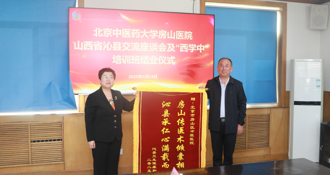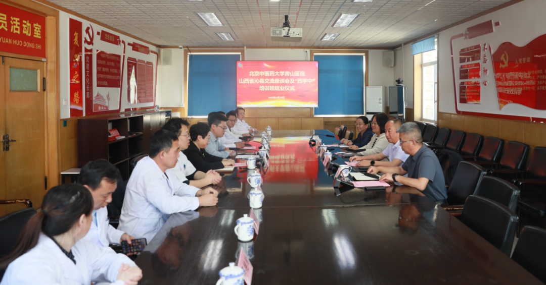 2025年4月24日下午,北京中医药大学房山医院山西省沁县“西学中”培训班结业仪式在北京中医药大学房山医院顺利举行。山西省沁县卫体局局长李宏伟、沁县中医医院党委书记张治国、房山区卫生健康委副主任郑红蕾、区卫生健康委科研教育中心继续医学教育办公室主任李洁清、北京中医药大学房山医院院长孙鲁英、党委委员李鹏,以及9名来自山西沁县的西学中学员出席本次会议。会议由李鹏委员主持。