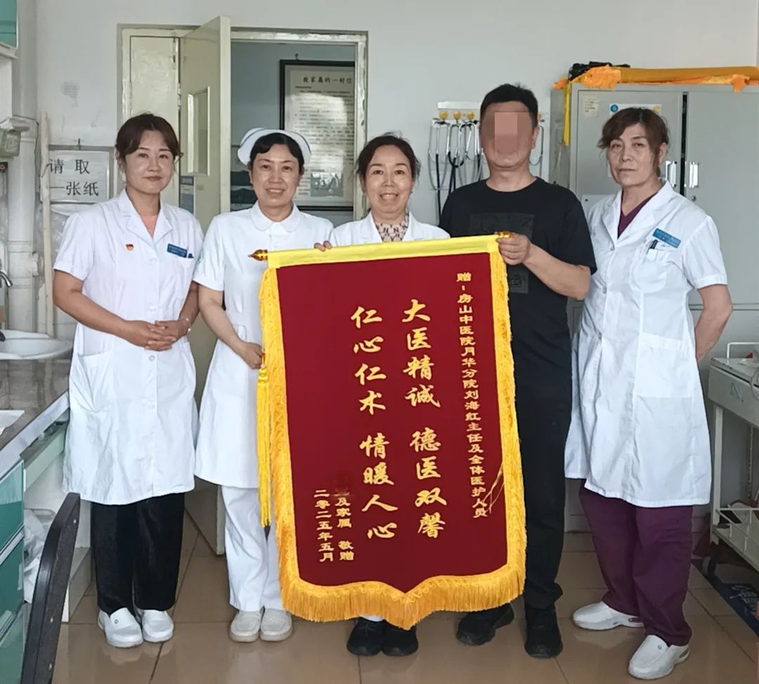 近日,北京中医药大学房山医院月华分院的医护人员收到了一面饱含深情的锦旗。患者邵先生的家属紧握刘海红主任和杨会林主治医师的手,连声道谢:“是你们给了我们第二次希望!”以此表达对医护团队精湛医术和悉心照料的深深谢意。