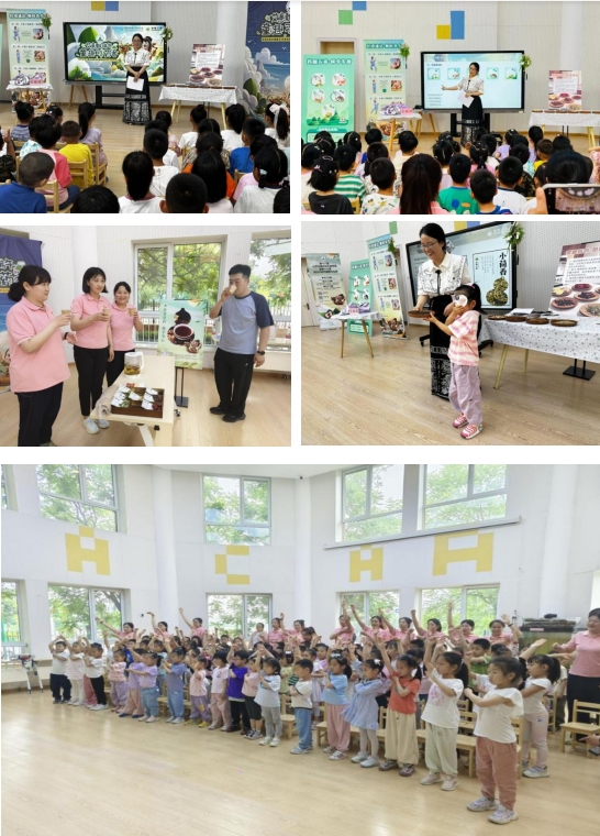 健康教育科副科长文银萍通过图文并茂的PPT和生动的讲解,为孩子们详细介绍了端午节的起源和习俗;带领孩子们认识了五毒月和五毒虫,讲解了五毒虫是否真的有毒以及驱虫妙招;随后分享了端午节期间如何通过饮食、起居和中医外治法进行养生,带领老师们品尝端午五福茶;生动介绍了厨房里常见的中药知识,组织了蒙眼辨药游戏;最后带领孩子们学习“猴戏养心操”,模仿小猴子的动作进行顺时养生。孩子们踊跃参与、积极互动,从中药、中医五行、饮食养生、运动养生等不同方面了解了中医药健康常识和中医药文化。