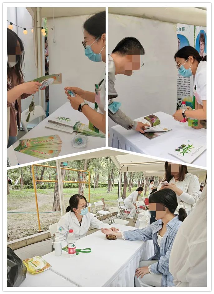 为深入贯彻落实习近平总书记向2024世界传统中医药大会致贺信的重要指示精神和世界传统医药大会精神,进一步落实《国务院办公厅中医药振兴发展重大工程实施方案》以及《“十四五”中医药文化弘扬工程实施方案》中关于提升公民中医药健康文化素养水平、增加中医药文化产品和服务优质供给的工作部署,北京市中医药管理局于2025年5月19日—25日举办了第十八届北京中医药文化宣传周暨第十七届地坛中医药健康文化节活动,北京中医药大学房山医院积极组织、派出专家进驻地坛,为群众进行中医药健康咨询,宣传中医药知识。5月23日,医务科艾凯蕾、心内科臧冬梅组成服务小队,来到北京地坛公园进行中医药服务,虽然当天气温偏低,但前来咨询的群众络绎不绝。