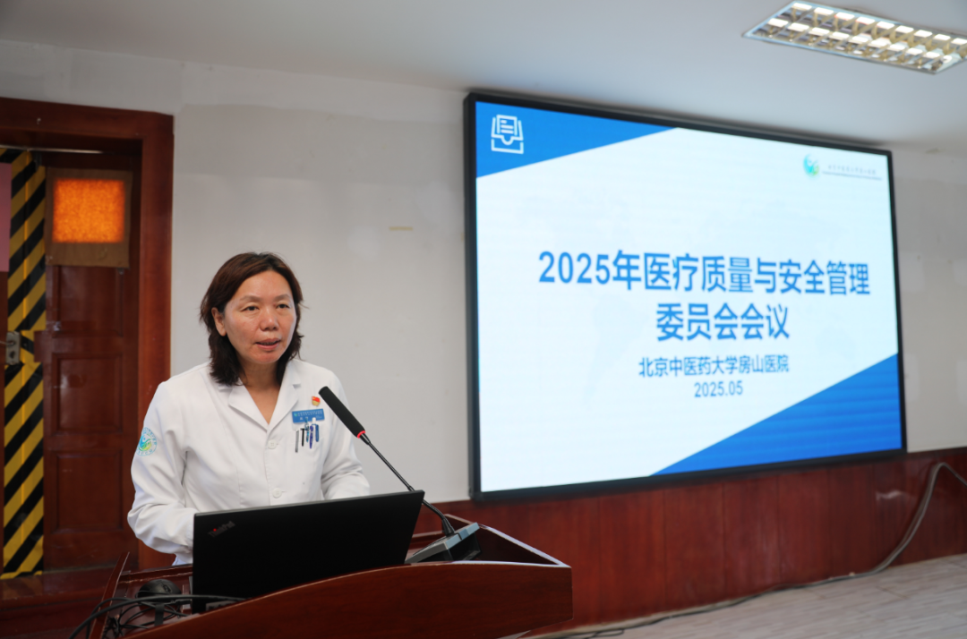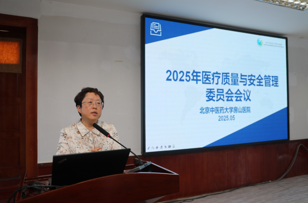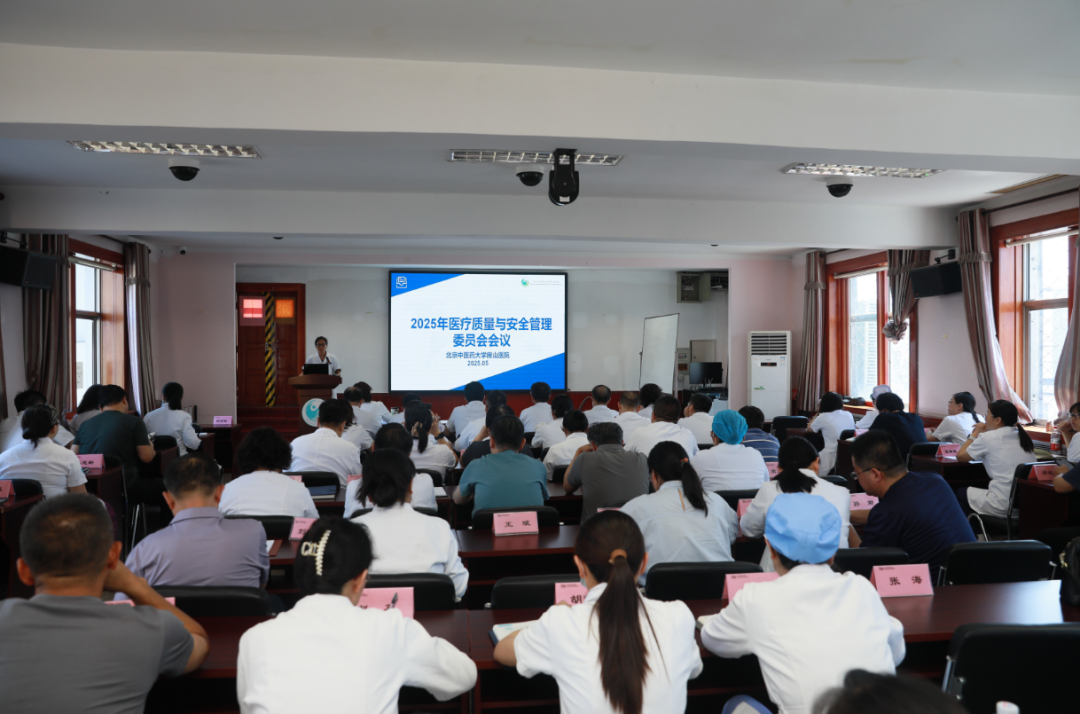 2025年5月27日,北京中医药大学房山医院召开月度质控会。院领导班子、临床科室主任、质控员、护士长、医技科室及相关职能科室负责人在西二楼会议室参会。会议由医务科科长代阿秋科长主持。