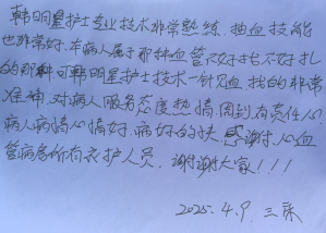 纸短情长,信里的一字一句,都是对“以心护心”的回应。当“一针见血”的技术遇上“随口唠叨”的真心,当治疗车的轮声混着细碎的叮嘱,这场医患间的双向奔赴,便在平凡的日常里,写下了最动人的注脚。