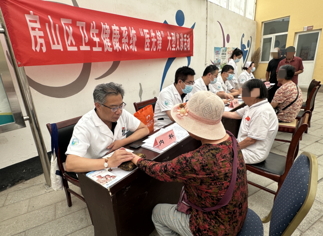 为庆祝中国共产党成立104周年,按照区卫健委工作部署,6月28日上午,由医院党委委员、副院长王静、党委委员李鹏、门诊办负责人曹永辉分别带队,携手窦店镇社区卫生服务中心、长沟镇社区卫生服务中心和大石窝镇社区卫生服务中心,走进南嘉园社区居委会、太和庄村委会和辛庄村委会,开展了以卫生健康系统“医先锋”为主题的大型义诊活动,将健康关怀送到居民身边。