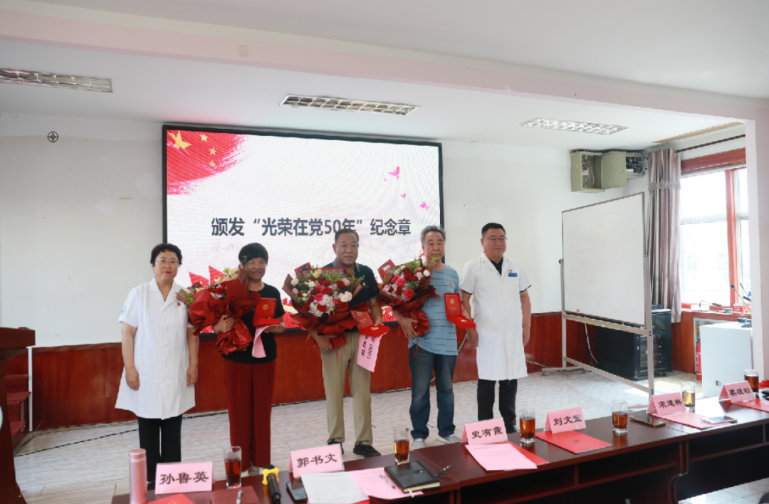 随后,党委书记郭书文、党委副书记、院长孙鲁英为刘文宽、宋建林、史有霞同志颁发“光荣在党50年”纪念章和慰问金,代表医院党委向他们致以崇高敬意,三位同志感谢党委给予他们这份荣誉,并表示一颗红心永向党,愿意尽自己所能,继续发挥余热。