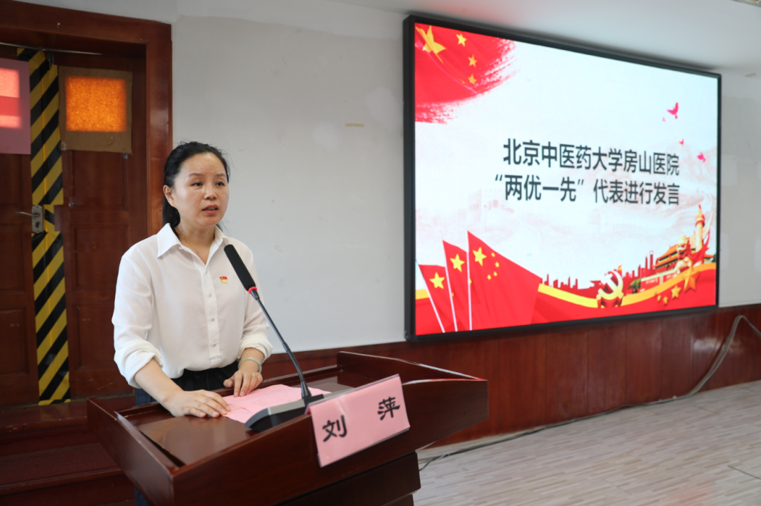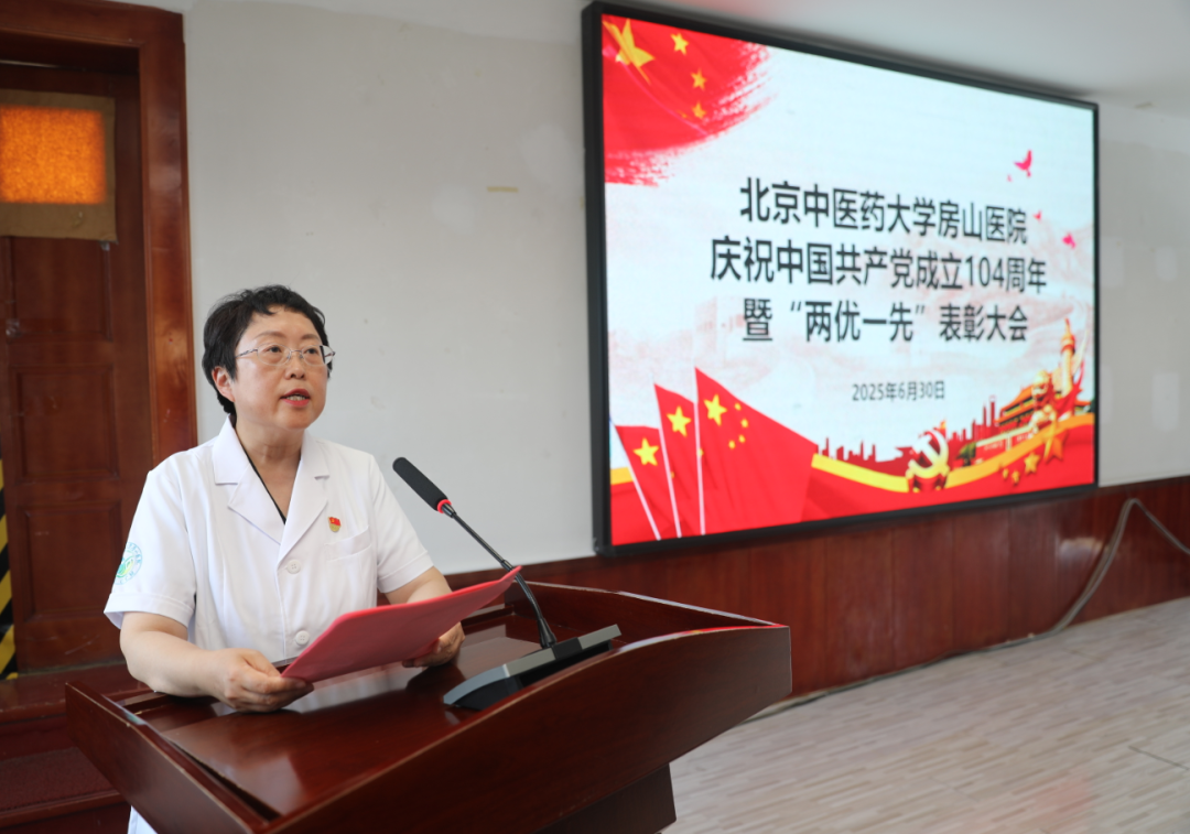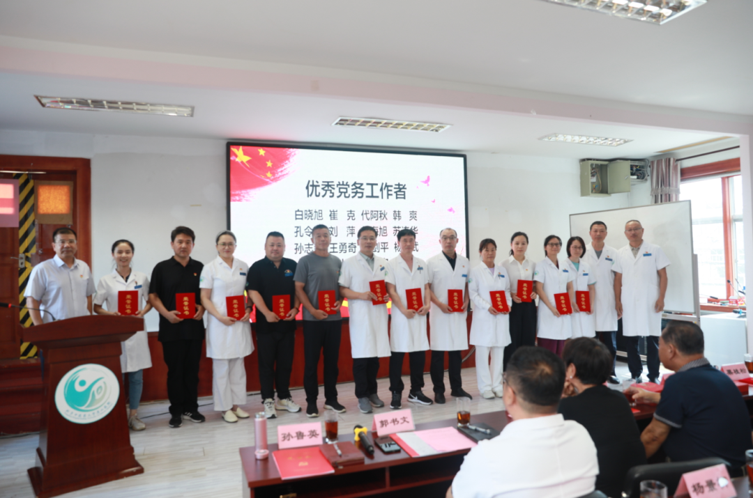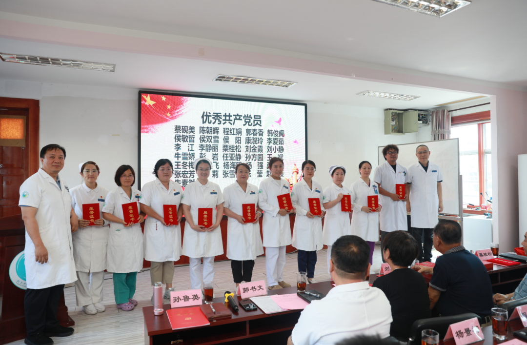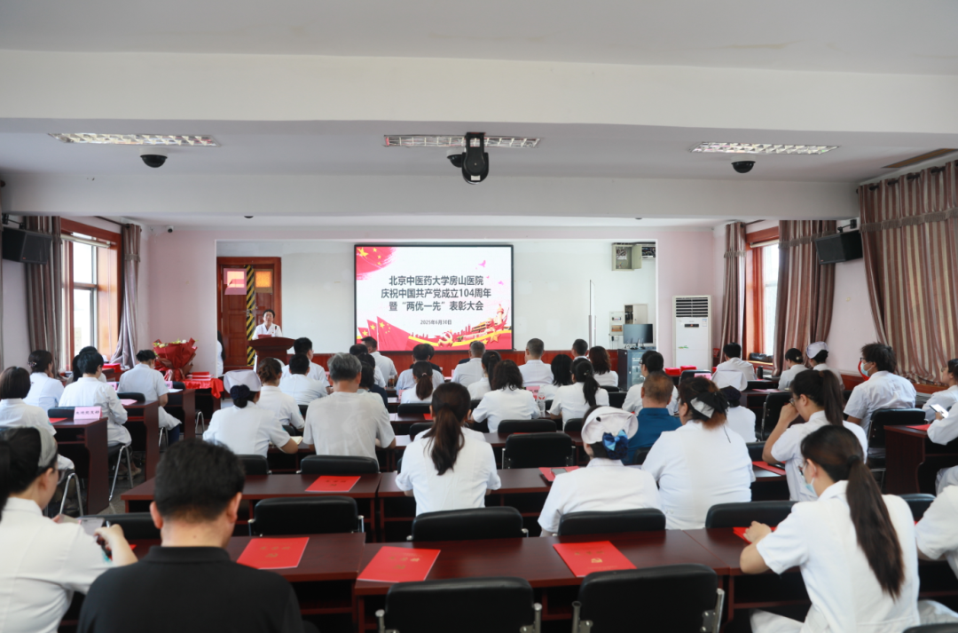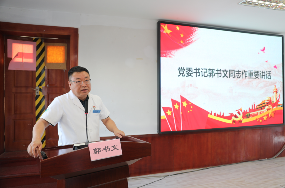 最后,郭书文同志做了总结讲话:新房山中医人已擎起前辈旗帜,以党建引领医院高质量发展,在各个领域取得了一批突破性成果。医院成功获批“国家中医特色重点医院”“全国住院医师规范化培训基地”,创建了多个国家级、市级、区级重点专科。以服务群众为“落脚点”,深化“红色流动医院先锋队”党建品牌“含金量”,构建“四位一体”人才体系,强人才、促发展、创未来,梳理调整中层干部队伍。深化医教协同,推进科研产出。强基础、优安全,压实“网格化”管理责任。围绕医院2025年“十大任务 工作方针”,以开源节流为基础、提质增效为核心,在保障职工待遇的同时当好“贴心人”,持续提升职工幸福感和归属感。锚定发展定位,高标准推进新院区建设,开创中医药事业传承发展,用扎实的行动向建党104周年献上最诚挚的厚礼,在新时代续写为民服务、守护健康的壮丽篇章!
