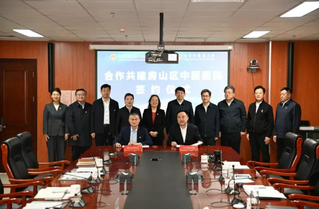 11月20日,北京中医药大学与房山区人民政府成功签署共建北京市房山区中医医院合作协议,标志着校地双方在深化协同发展、共促区域卫生健康事业创新提升方面迈出坚实步伐。我校全体在家校领导与房山区委、区人大、区政府、区政协四套班子领导共同见证,副校长刘存志与区委常委、常务副区长何景涛代表双方签署合作协议。