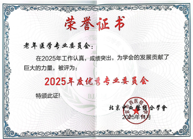 近日,北京中西医结合学会公布了2025年度优秀专业委员会的评选结果,由北京中医药大学房山医院院长孙鲁英担任主任委员的老年医学专业委员会,凭借突出的学术贡献和广泛的社会影响力,被授予“2025年度优秀专业委员会”荣誉称号。这一荣誉不仅是对专委会全体成员辛勤付出的肯定,也是对我院在老年医学领域持续深耕、引领发展的充分认可。