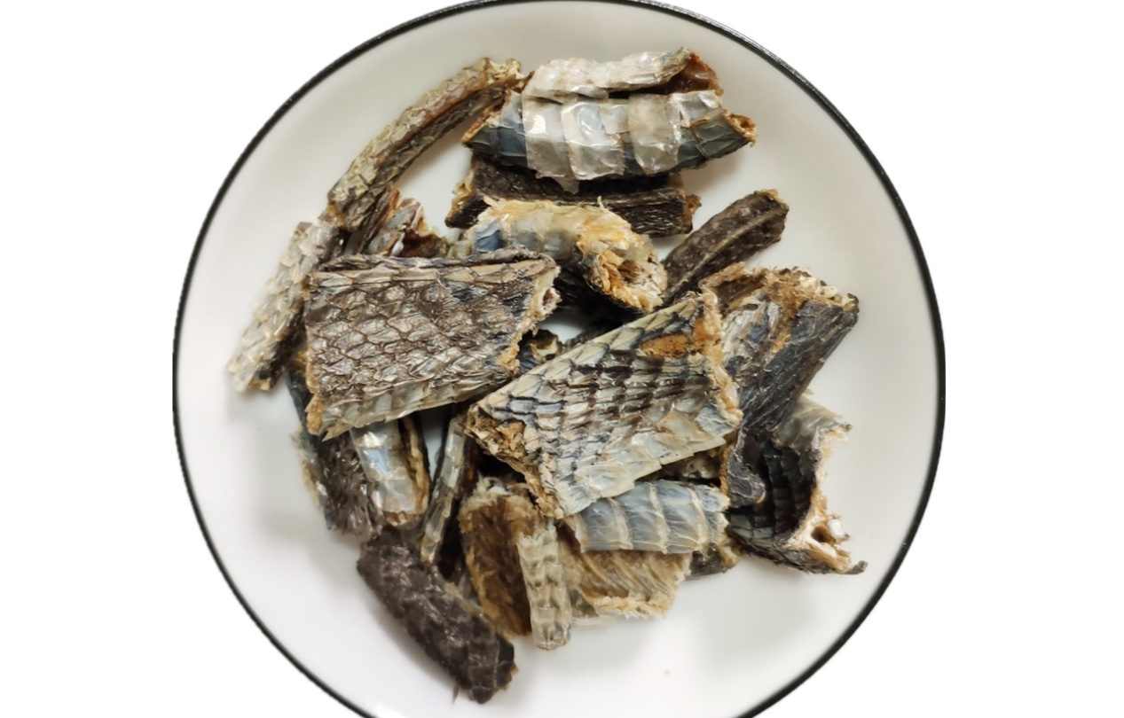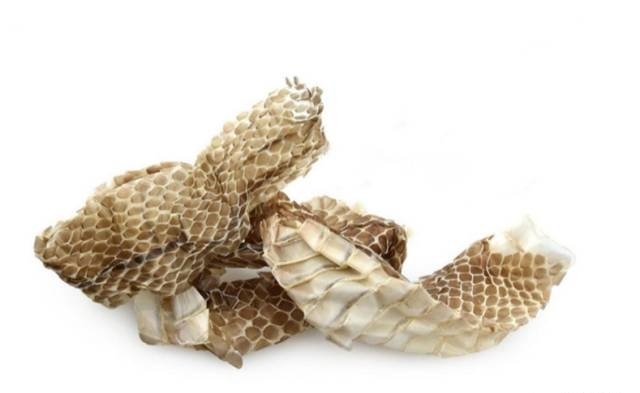 来源于游蛇科动物黑眉锦蛇、锦蛇或乌梢蛇等蜕下的干燥表皮膜(俗称蛇皮、又名龙衣)。具有祛风,定惊,退翳,解毒的功效。用于小儿惊风,抽搐痉挛,翳障,喉痹,疔肿,皮肤瘙痒。