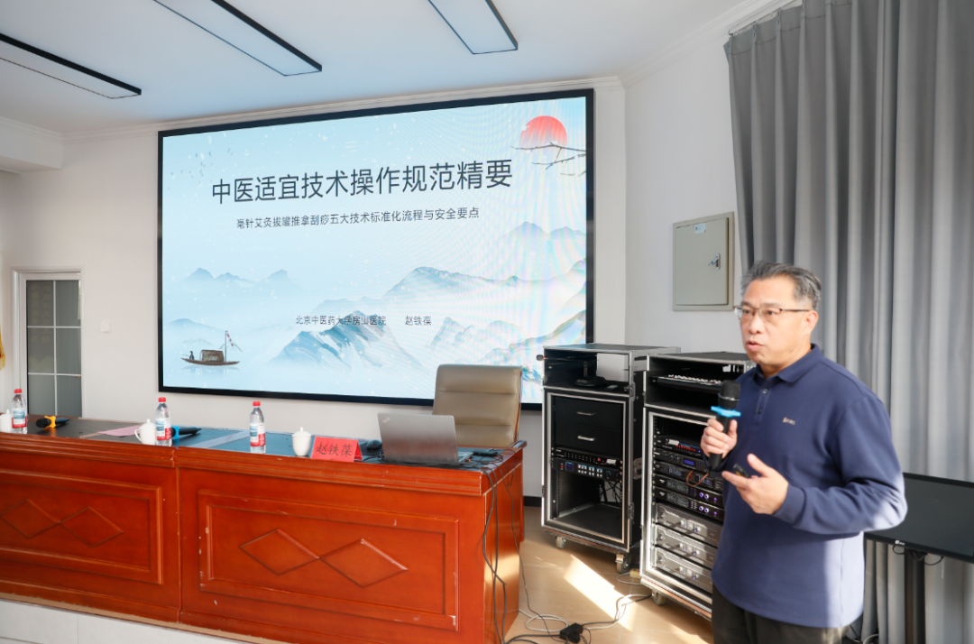 随后,赵铁葆主任详细讲解了“穴位贴敷”的临床使用及“中医药适宜技术操作规范精要”,强调了在养老服务机构中开展中医适宜技术服务的标准化与安全性,为一线工作者提供了清晰的行动指南。