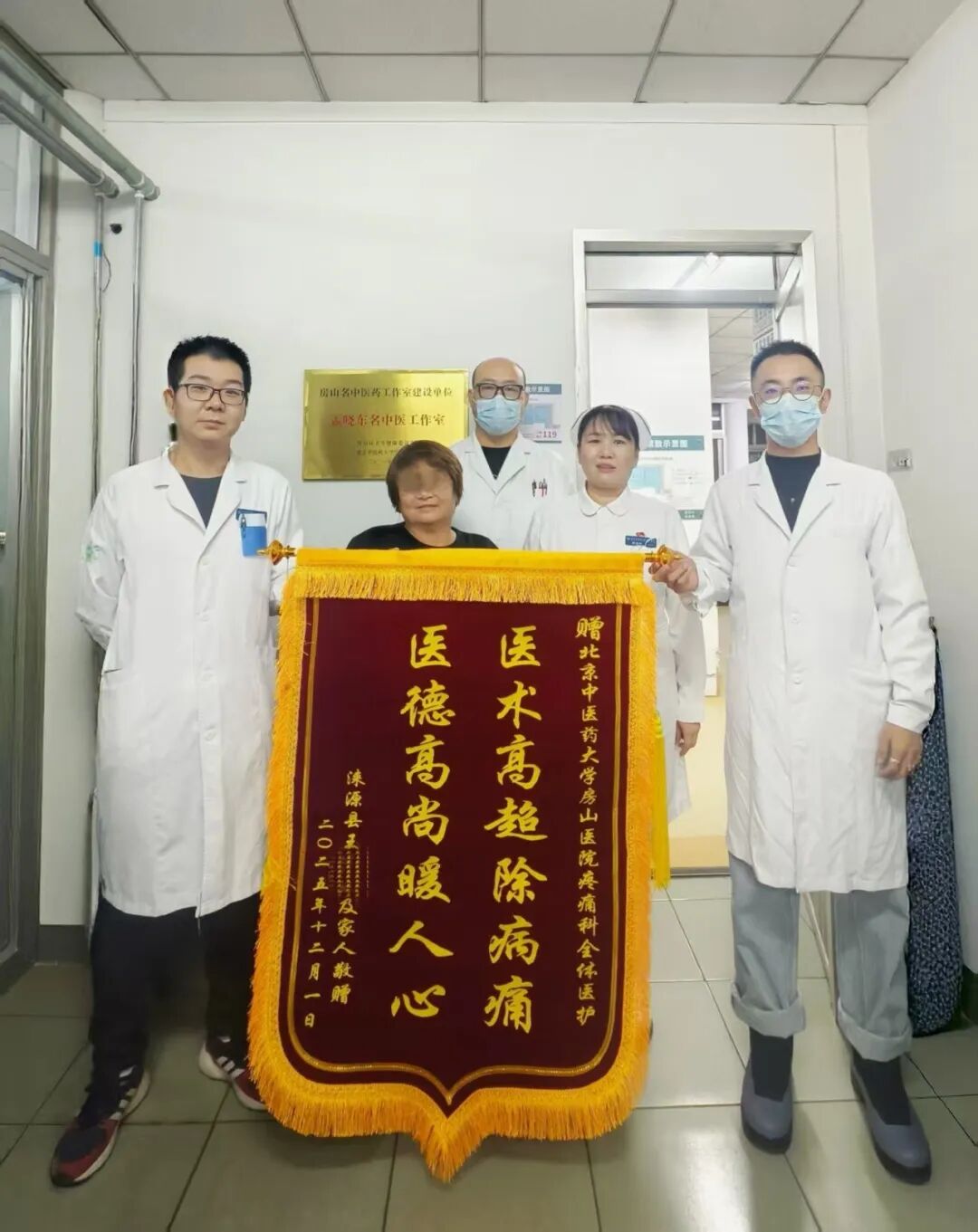 一面锦旗,一份认可,12月1日上午,北京中医药大学房山医院疼痛科收到了一份温暖的礼物—来自患者王阿姨的锦旗。锦旗上“医德高尚暖人心,医术高超除病痛”的金色大字,不仅是她摆脱腰痛、头痛双重困扰的轻松,更藏着对疼痛科“暖医+仁术”的高度认可。