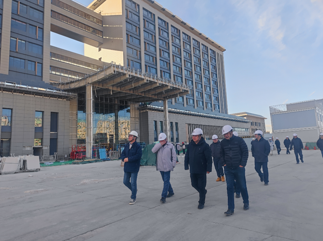 在新院建设工地,院领导详细询问工程进度,重点督查了施工安全防护、临时用电及工人安全教育落实情况,并对现场安全管理成效给予了肯定。