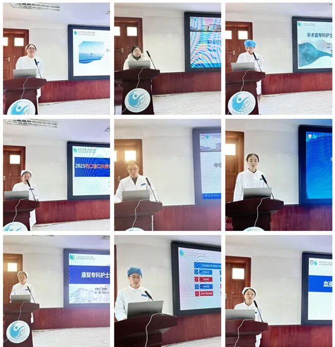 会上,刘红鑫老师首先阐明了本次汇报会的核心目的,着重强调深化专科护理内涵的重要意义,明确提出要充分发挥专科护士的专业优势,切实彰显护理工作的专业价值。2025年,我院选派呼吸、中西医结合、消化、静疗等13个专业的19名护理骨干,参加为期2个月的专科护士培训。全体人员均顺利通过考核,取得专科护士证书。汇报环节中,19名护士以制作精良的PPT为载体,全面分享了外出学习的收获、感悟与未来工作设想。她们结合自身专业特点与学习方向,多角度、深层次地展现了培训基地的先进护理理念、标准化管理模式、人性化服务细节、特色化学科建设、个性化人才培养体系及浓厚的护理科研氛围,将前沿的新知识、新技术、新理念传递给全院护理同仁。同时,她们立足我院实际,提出具体工作计划,将所学的新知识、新方法应用于临床实践,充分展现了专科护士的专业价值与责任担当。