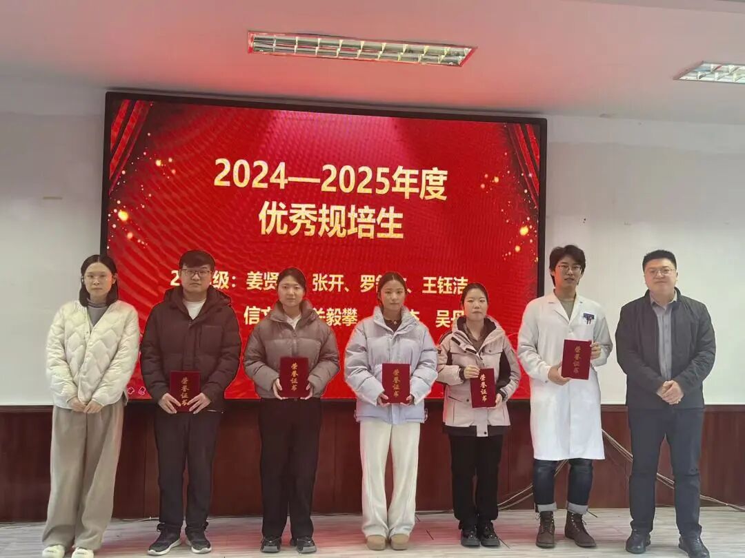会议伊始,王娅辉副科长作年度规培工作报告,系统回顾了2025年度规培工作在过程管理、结业考核、荣誉奖励等方面取得的进展与成绩。同时明确下一年度规培工作的重点任务与改进方向,确保“质量提升”核心要求贯穿始终。为表彰先进、树立榜样,现场举行优秀规培学员颁奖仪式。李鹏党委委员为表现突出的13位优秀规培学员颁发荣誉证书,肯定其勤奋务实的学习态度与优异成绩。