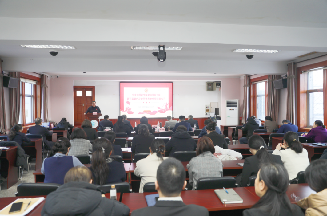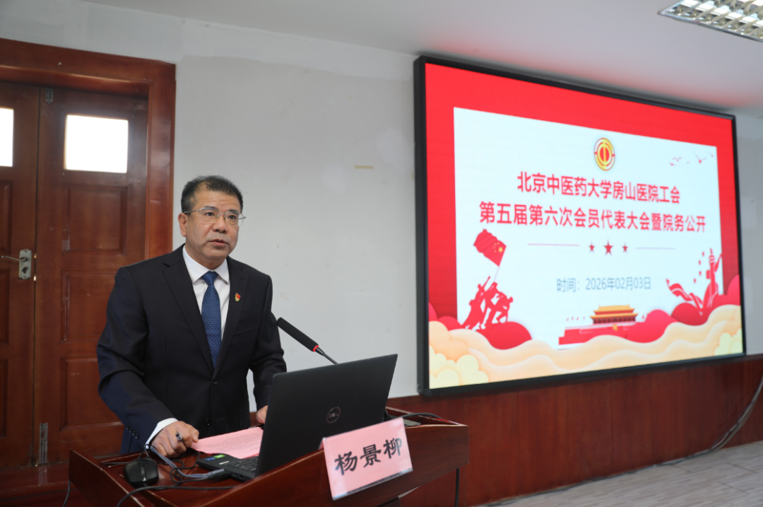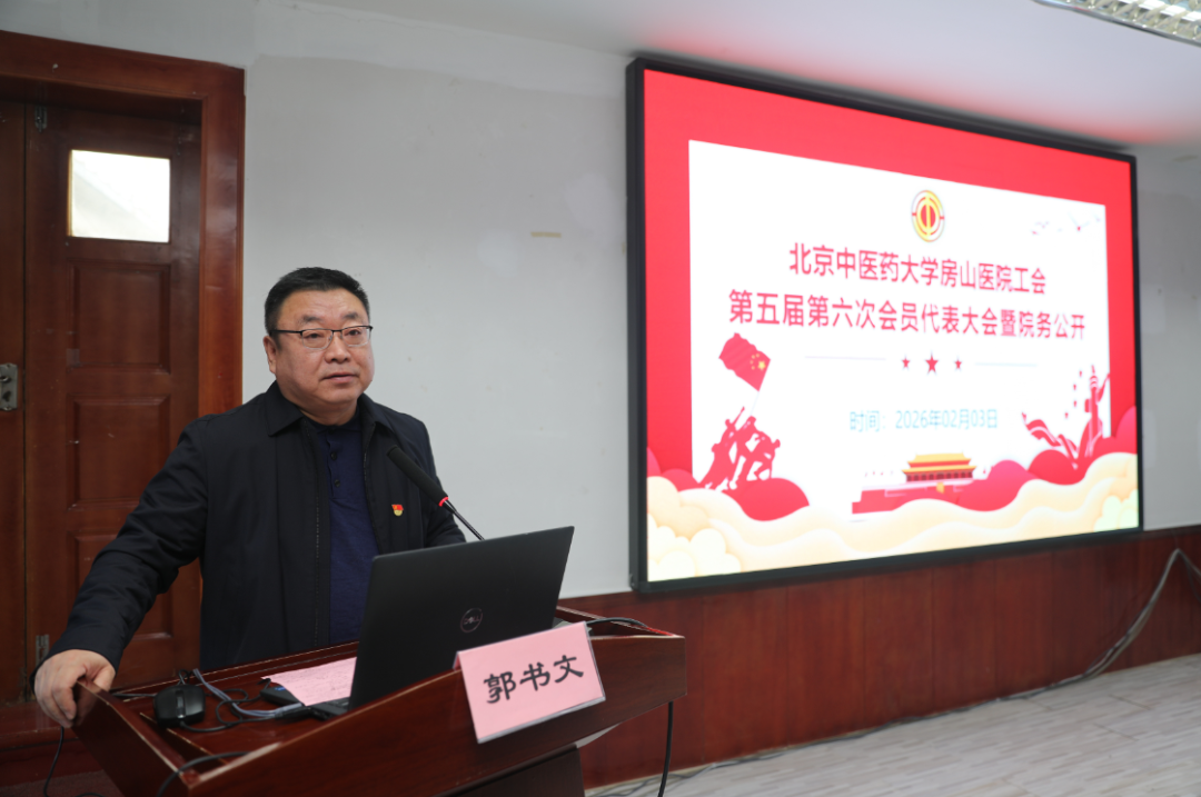 2026年2月3日,北京中医药大学房山医院工会第五届第六次会员代表大会在医院西二楼会议室隆重召开。医院领导班子、中层干部、职工代表百余人参加会议,会议由工会主席杨景柳主持,大会在雄壮的国歌声中开幕。