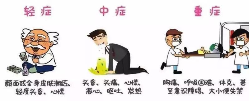 双硫仑样反应严重程度与应用药物的剂量、饮酒量呈正比。饮用白酒较啤酒、含酒精饮料等反应重,用药期间饮酒较停药后饮酒反应重。本身就有心血管基础病的人,还有可能严重到造成呼吸抑制、心力衰竭乃至死亡。