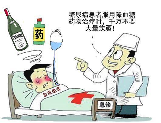 服用降糖药之后饮酒,酒精会刺激胰岛素分泌,会增加低血糖发生风险。特别是二甲双胍这类降糖药,如果与酒精混用可能会出现乳酸性酸中毒的风险,表现为恶心、无力、心慌等症状。由于此类症状常常被醉酒反应所掩盖,不易与醉酒区别。所以可能会导致出现严重而持久的低血糖,患者往往浑然不觉,最终发生低血糖性休克。