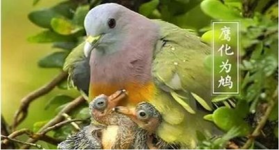 有人认为,鹰每年二、三月飞返北方繁殖,已经不见迹影,只有斑鸠飞出来。于是古人以为,春天的斑鸠是由秋天的老鹰变化出来的,我们更倾向于,认为这是一个比喻,意为春气温和,连鹰都变得像斑鸠一样温柔了。