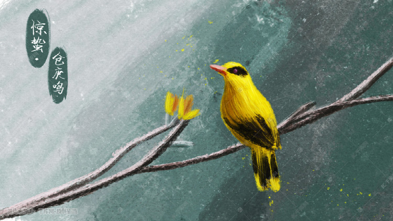 仓庚,即黄鹂,黄鹂鸣叫,动物开始求偶。