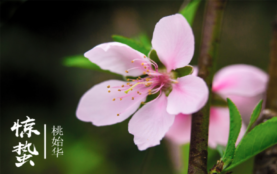 桃花的花芽在严冬时蛰伏,于惊蛰之际开始开花,自此渐盛。