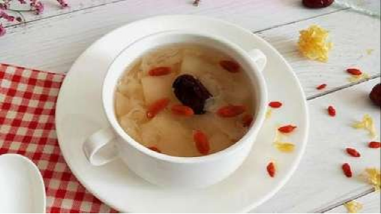 【材料】银耳20克、红枣 6颗、雪梨 1个、枸杞5克、冰糖适量